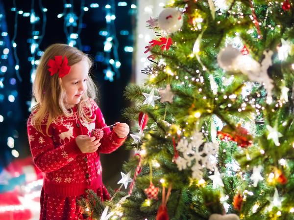 Once the lights are in place, you can start to build up the other decorative elements in this order: garlands, ornaments, baubles, and then your star or your angel to top it off.