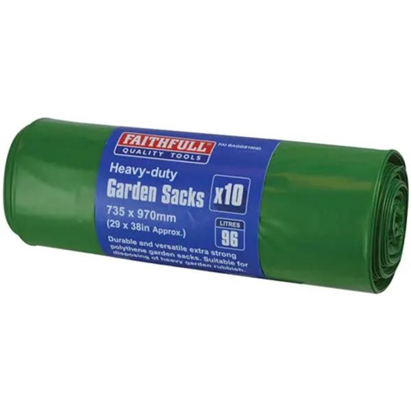Experience unparalleled strength and reliability with Faithfull Bags - Garden Green Sacks H/Duty 10Pk. Specifically designed for tough waste disposal, these heavy-duty green sacks are perfect for all your refuse needs, whether at home, in the garden, or for commercial use.