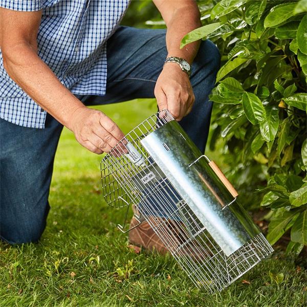 The Big Cheese Live Multi-Catch Rat Trap is a durable, long-lasting solution made from rust-proof, galvanized steel mesh, designed for use in all weather conditions. This humane trap can catch up to 5 live rats at a time without causing harm, allowing for safe relocation and release, with no hazardous sharp edges.