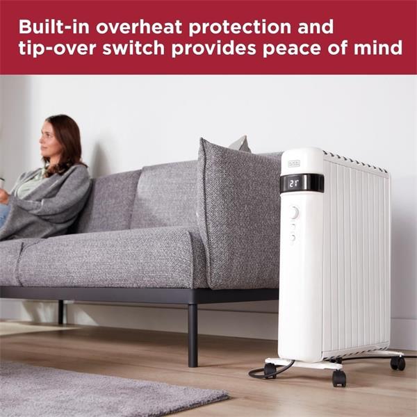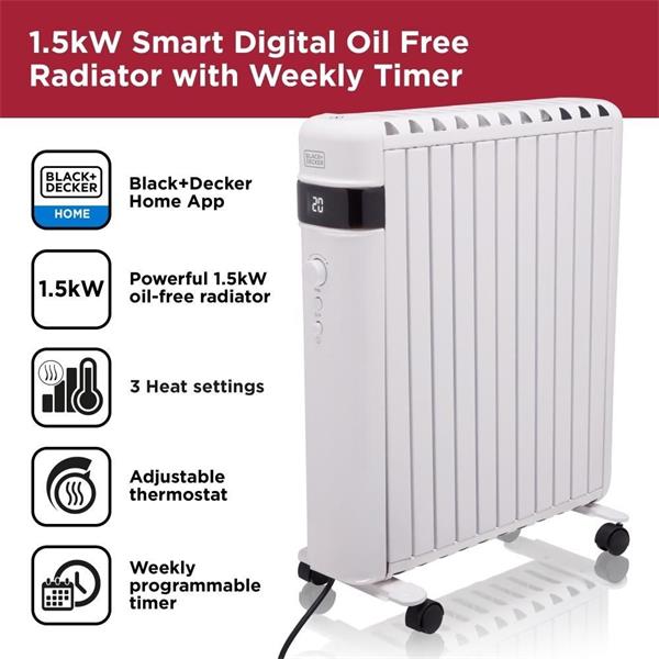 Black & Decker Smart Digital Oil-Free Radiator – 1.5kW | Portable Heater with App Control, Adjustable Heat Settings & 24-Hour Timer