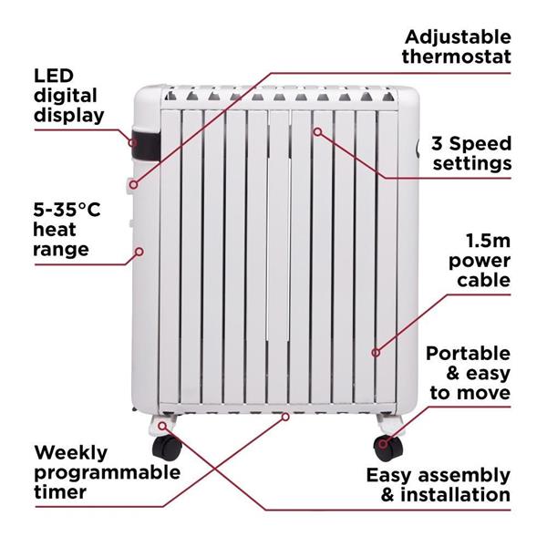1.5kW oil-free radiator with smart digital controls