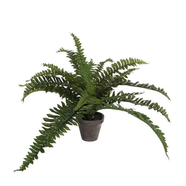 Enhance your indoor space with the Boston Fern Green in Pot Stan Grey D11.5cm - H35xd45cm. This artificial plant captures the lush, vibrant essence of a real Boston fern, providing all the beauty without the maintenance. Ideal for homes, offices, or any setting that could use a touch of greenery.