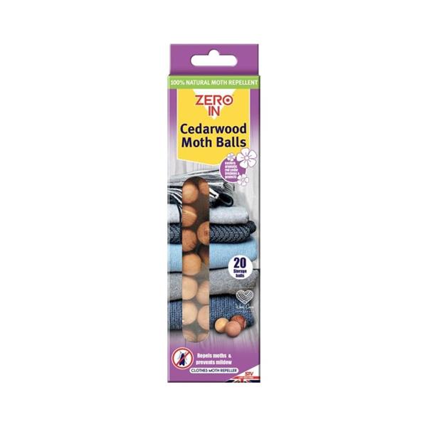 Protect your wardrobe, cupboards, and drawers from clothing moths with the Zero In Cedarwood Clothes Moth Repeller. Made from 100% natural Eastern aromatic red cedar, these 20 storage balls provide a chemical-free alternative to traditional moth balls, ensuring your clothes stay safe and fresh without harsh chemicals.