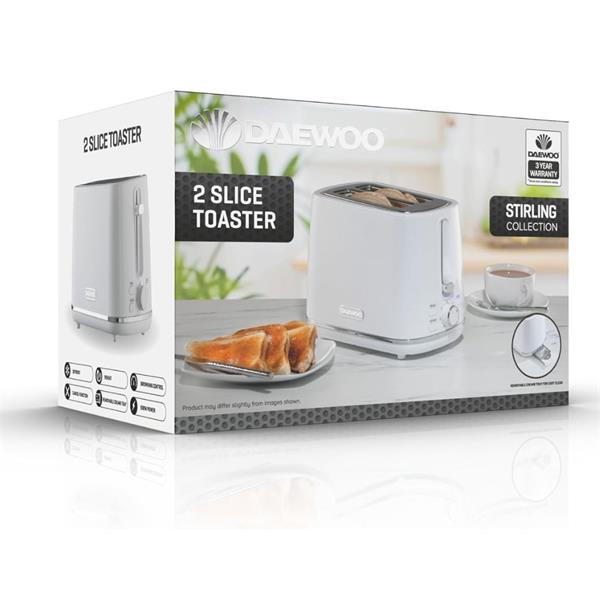Introducing the Daewoo Toaster Stirling 1.7L White, the perfect blend of style and functionality for your kitchen. Designed with modern aesthetics in mind, this toaster is part of the Stirling Collection, which also includes a matching kettle for a cohesive look. Enjoy toasting with ease, thanks to its innovative features.