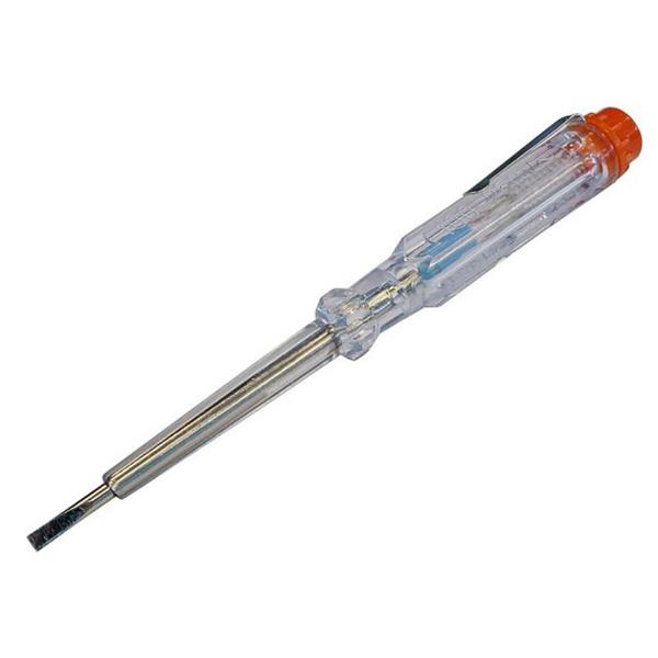 This Faithfull Mains Tester Screwdriver is fitted with a neon indicator in the clear plastic handle which illuminates when the point of the tester is touched on a live voltage source.