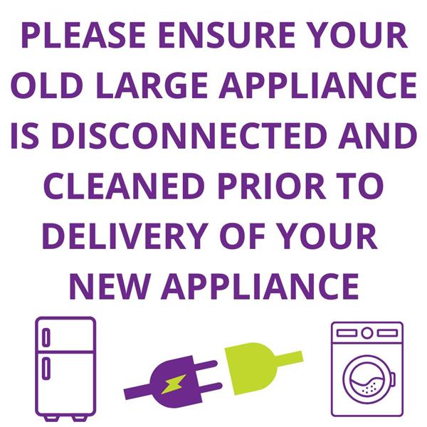 If ordering for delivery please ensure old appliances are disconnected and clean for collection