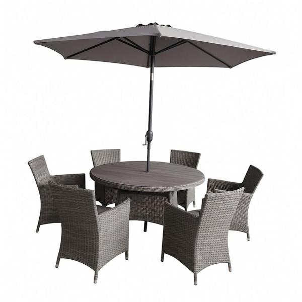 Constructed from high-quality materials, the Kaemingk Parma Round Dining Set ensures durability and elegance. Its round design fosters intimacy and encourages conversation, making every dining occasion a memorable one.