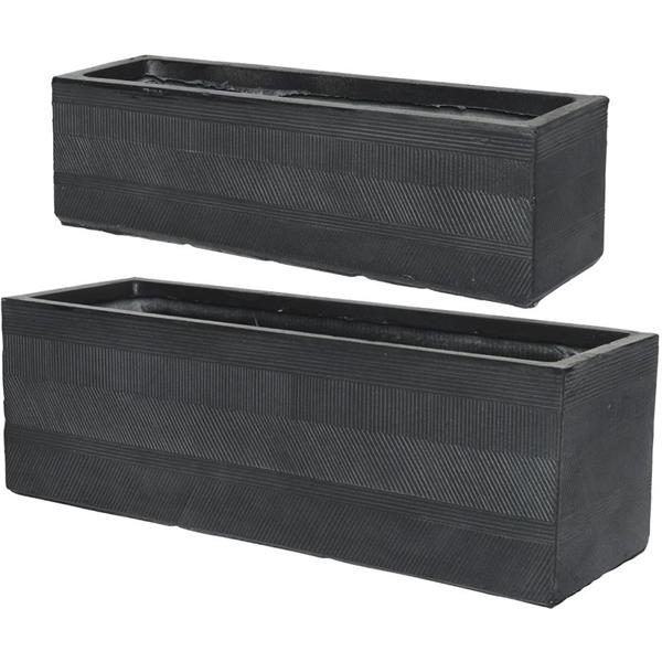 Elevate your gardening experience with the Planter - Fibreclay 2Pc Rect Black. Crafted for both style and functionality, this planter set is designed to complement any outdoor or indoor space