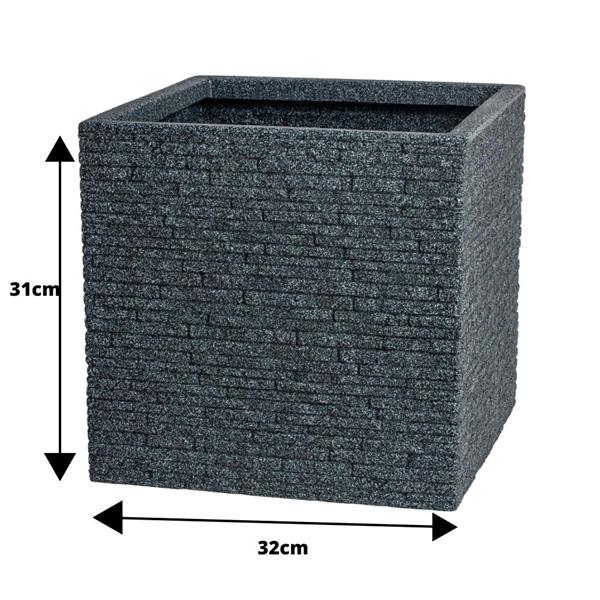 The Strata Planter Square Slate Anthracite 32 cm is a lightweight, durable square outdoor/indoor planter with a modern slate-effect finish that’s weather-resistant and ideal for displaying plants in patios, gardens, or homes.