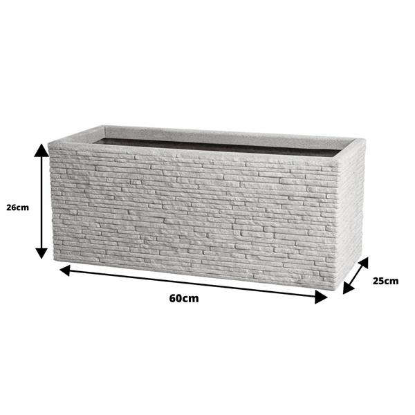 The Strata Planter Trough Slate Light Grey is a long, rectangular outdoor/indoor planter with a contemporary slate-effect finish, built for durability and ideal for displaying a variety of plants, herbs, or flowers.