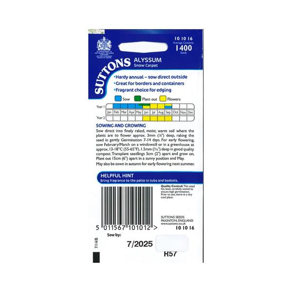 The Sutton Alyssum Snow Carpet seed is: