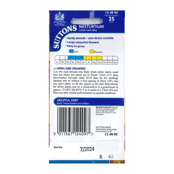 The Sutton Seed Nasturtium Little Gem Mis is: