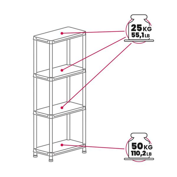 In short, the 4-shelf shelving unit is the ideal choice for those looking for a practical, sturdy and easy-to-install storage solution, without compromising on safety and quality.